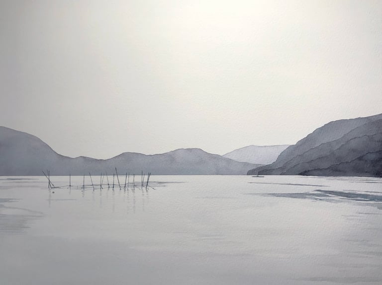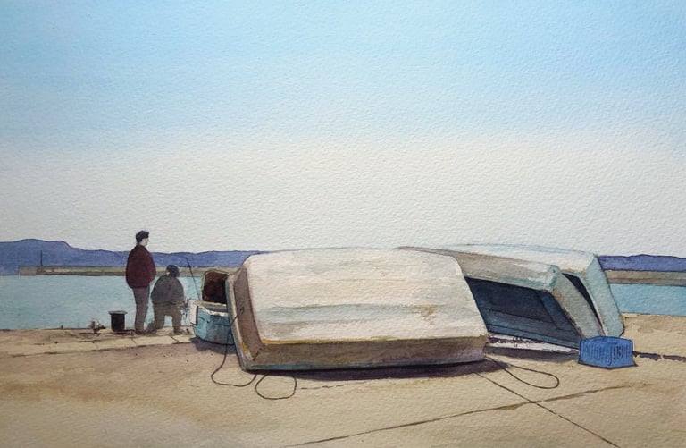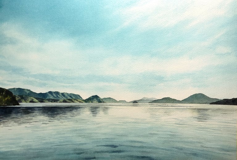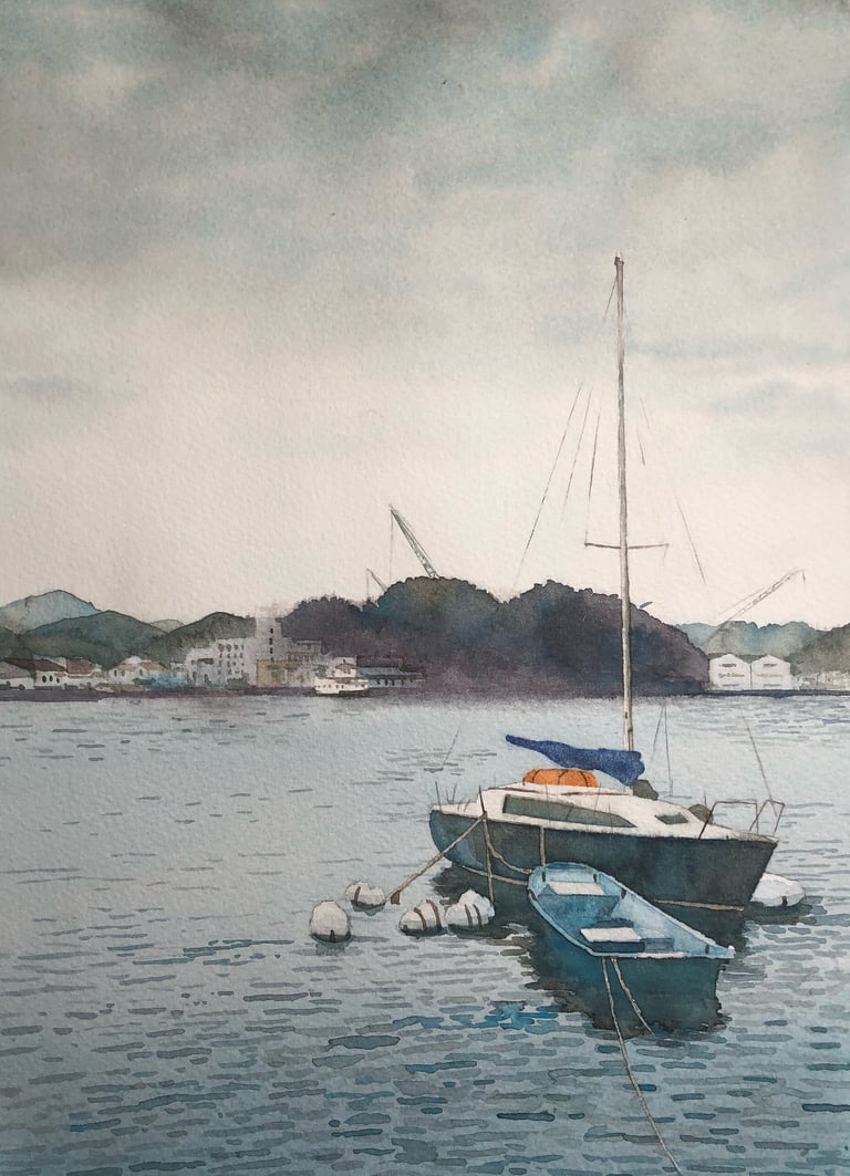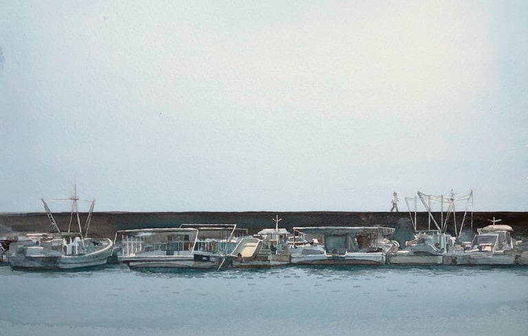 From the deep blues of distant harbors to the clear turquoise shores of Okinawa, this series explores the many moods of the sea. Boats drift, reflections shift, and waves rise or rest in silence—each painting capturing a fleeting moment shaped by wind, water, and light.