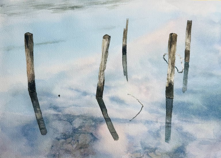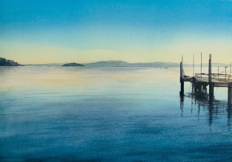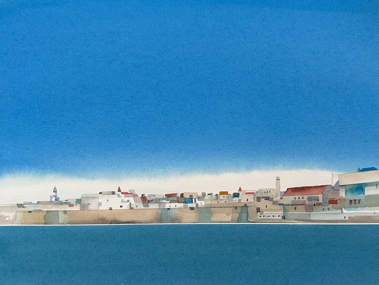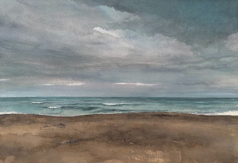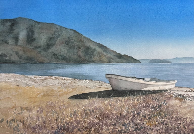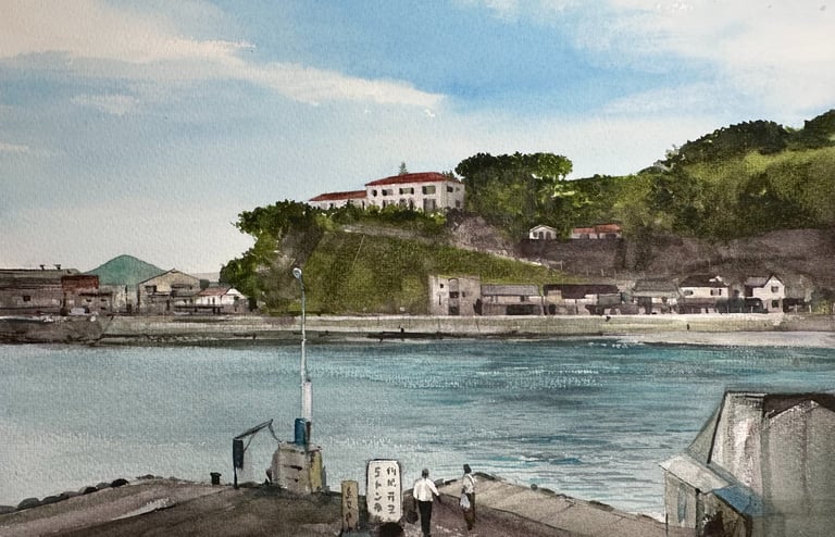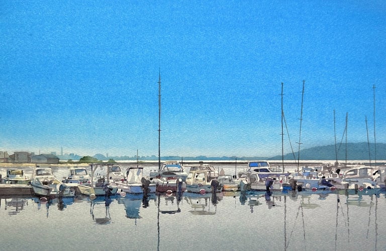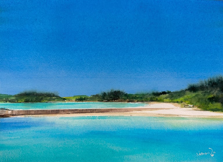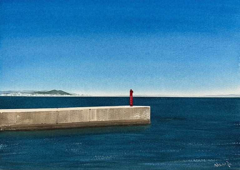 From the deep blues of distant harbors to the clear turquoise shores of Okinawa, this series explores the many moods of the sea. Boats drift, reflections shift, and waves rise or rest in silence—each painting capturing a fleeting moment shaped by wind, water, and light.